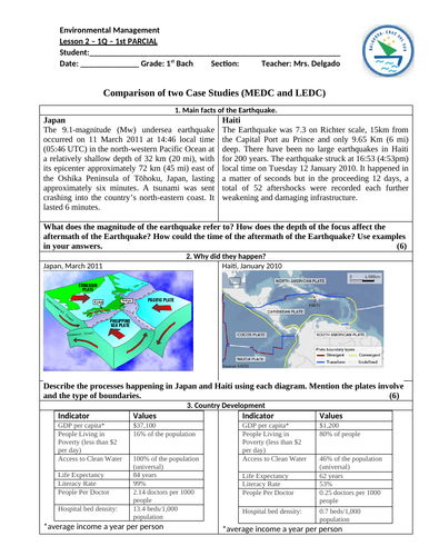 Haiti Earthquake 2010 Case Study Sheet