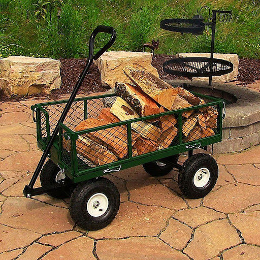 The multi-use wagon sides can be folded down or completely removed by pulling out the side pins creating a useful flatbed cart. Sunnydaze is a premiere brand of home garden decor. The durable powder-coated steel frame along with the four 10-inch pneumatic tires you can concur any terrain with ease.